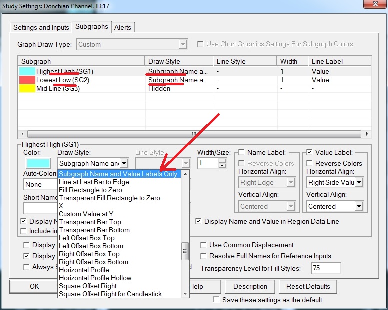 Attached is the chosen draw style option for the Donchian channel, just so you know.
