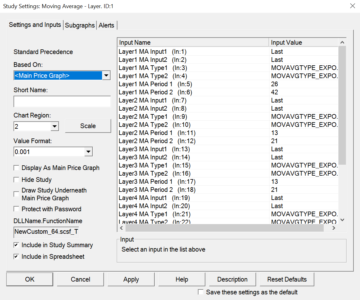 Hello, I am working on a custom indicator, nothing fancy its 5 colored layers that reflect various moving average positons. What I want to achieve is have each moving average reflects a different time zone. See attached image for how this indicator looks. Initially in the settings, my goal was to add "timeframe" so that I could set type, period, and time for each moving average. But I believe this cannot be done, adding multiple time-frames (MTF) into the indicator directly. Each timeframe has to be added via the chart, so using Study/Price Overlay. Using the Study/Price Overlay is fine, but it only allows one timeframe to be selected for the indicator as a whole, so all 5 layers ar set to either chart time, or Study/Price Overlay time. My goal is to have one timeframe per Layer, each of the colored bars. I can of course just create the indicator with 1 Layer, and add 5 of them but this defeats the purpose and is quite messy on the charts. So the question is there a way I can reference multiple timeframes to a single indicator, either via Study/Price Overlay or similar or via specific indicator coding? Thanks Marc Date Time Of Last Edit: 2020-05-14 01:50:11
