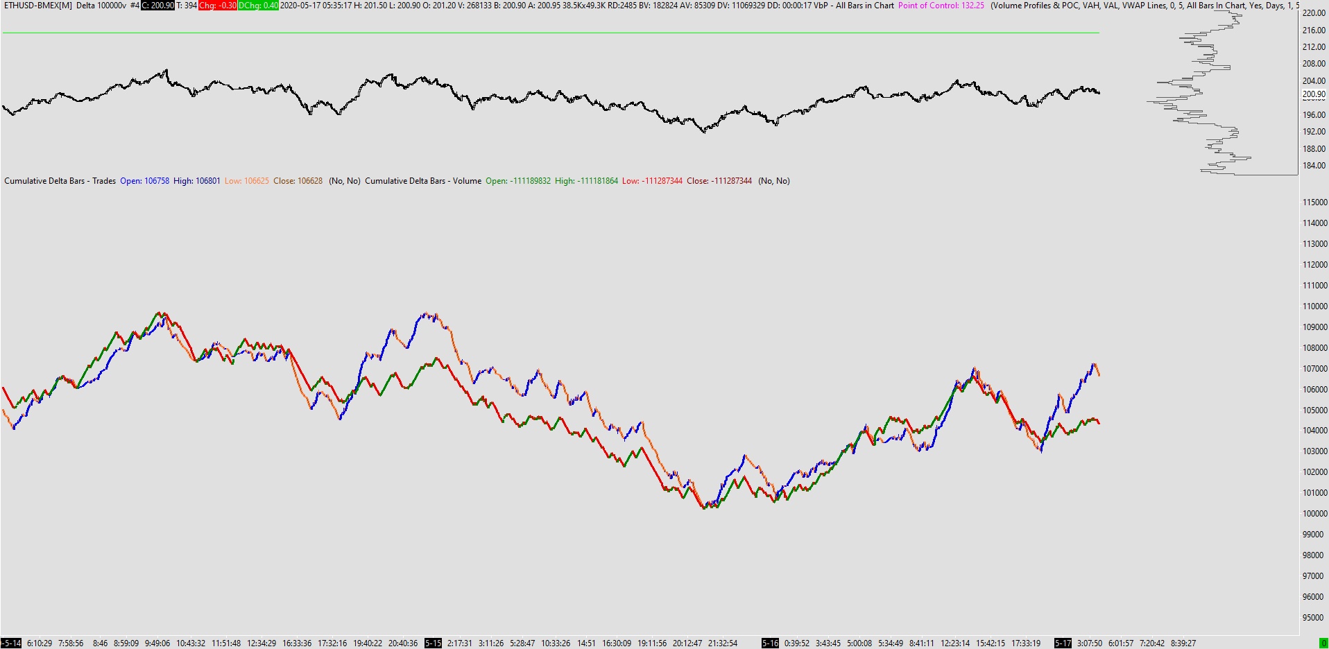 Hi - ive merged cumulative delta trades and cumulative delta volume studies together. Id like to link them so they are fixed and i can accurately discern when they cross over etc. I've tried things from older threads but couldnt seem to get it. Thanks for your time!