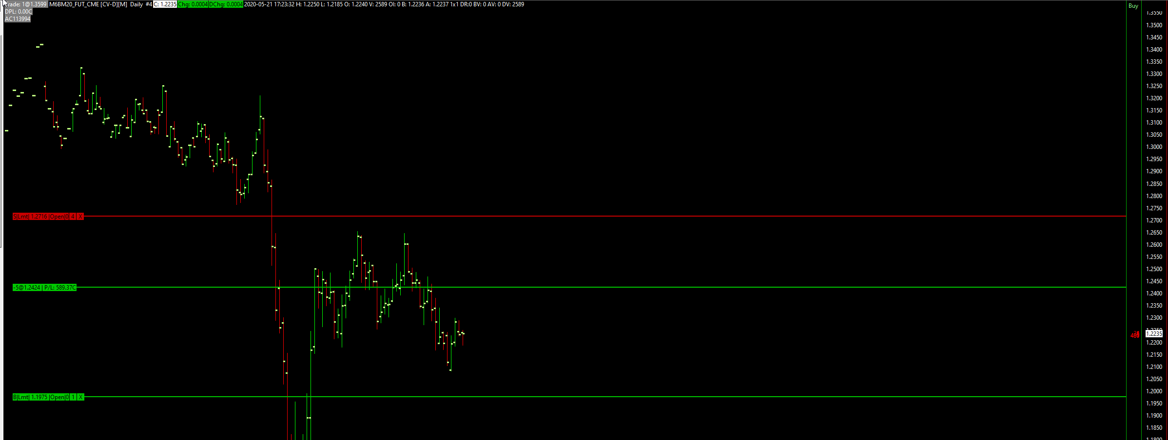 I am unable to see my current position on intraday chart. Yet it is visible on the Daily chart. That's hurting a lot, since there are very little means of tracking using TT feed. Attaching screenshots in hopes they help. |