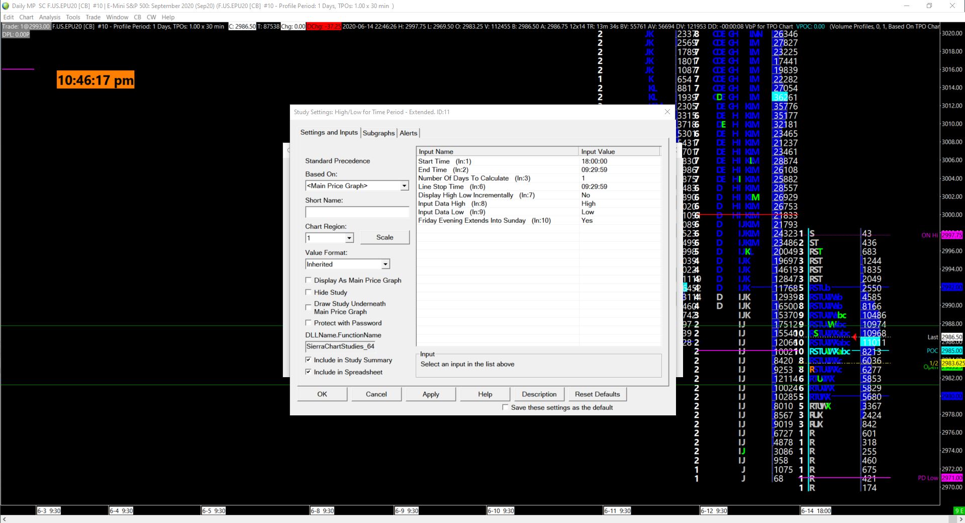 I currently have a profile chart and am using hi low for time period in which i would like to have the overnight hi and the overnight low marked on the chart...currently the ON hi is working but the overnight low is not...attached please find a picture of the profile and a picture. Please note the PD low is the porevious days low and is not generated from this study. Also can i use this study for the weekly hi and low and previous weeks hi and low? |