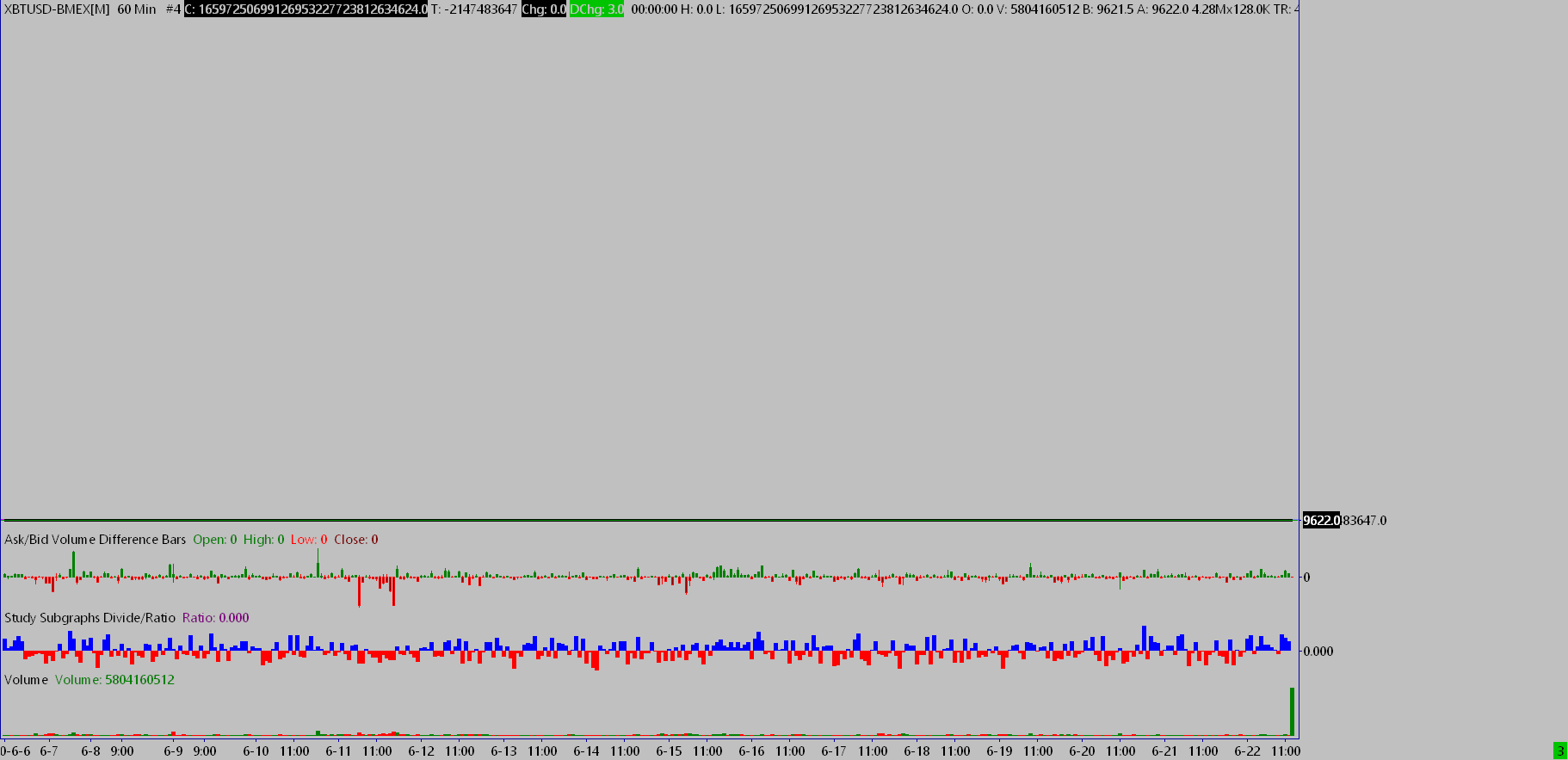 I there is 3 day that i have lot of bug on some chart for xbt usd bitmex ,some of them the candlesick price are displayed but there is a big bug on the scale , the prices aren't displayed ,i can't reset it i cant moove it it's locked, on some of them nothing appear. in the screen you can see the same chart in the second one i just try to go to the right until the actual price and all disapear. http://www.sierrachart.com/image.php?Image=1592958226771.png http://www.sierrachart.com/image.php?Image=1592958274868.png Maybe it's because of that http://www.sierrachart.com/image.php?Image=159295835271.png it's a market profile and at the right you can see un big wick green, it go until the price 0 , maybe this is where the bug come from. Date Time Of Last Edit: 2020-06-24 05:27:19