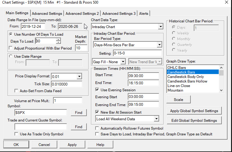 Hello, I've subscribed for real time exchange data and also activated CBOE exchange. I am getting the $SPX data only for the regular trading hours i.e. from 9.30 am EST to 4pm EST. But SPX trades from 03:00 AM EST untill 9.15 AM EST which I am not getting. I've changed my chart settings (pls refer the attachment) to include the evening session as well but still the data is not showing up. Do I need to do any other settings ? Also, let me know how to see the market depth data ? Regards, Sat |