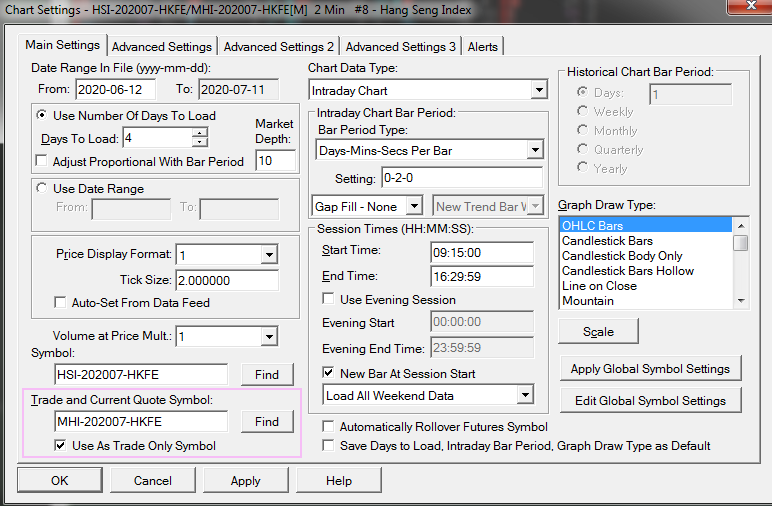 Hi there, Please see attached image of chart settings for your execution chart. Note the area in the rectangle that I have highlighted. |