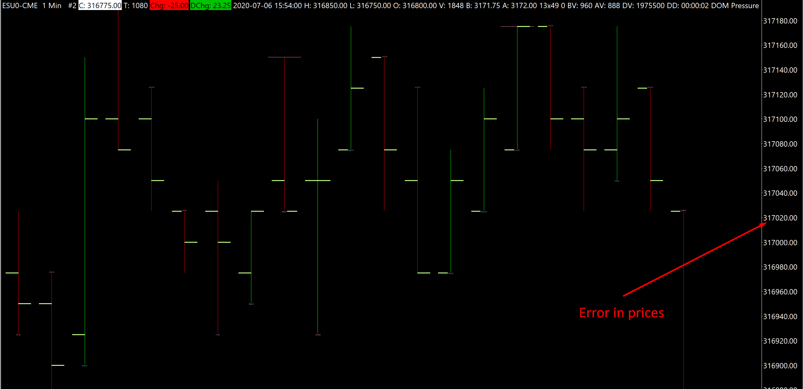 I have this problem with almost all the chartbooks I load, it shows me the prices of the Mini SP with several zeros at the end and with inconsistent quantities . I tried to edit the global setting of the symbol, and the price display format and nothing worked. What could be happening?