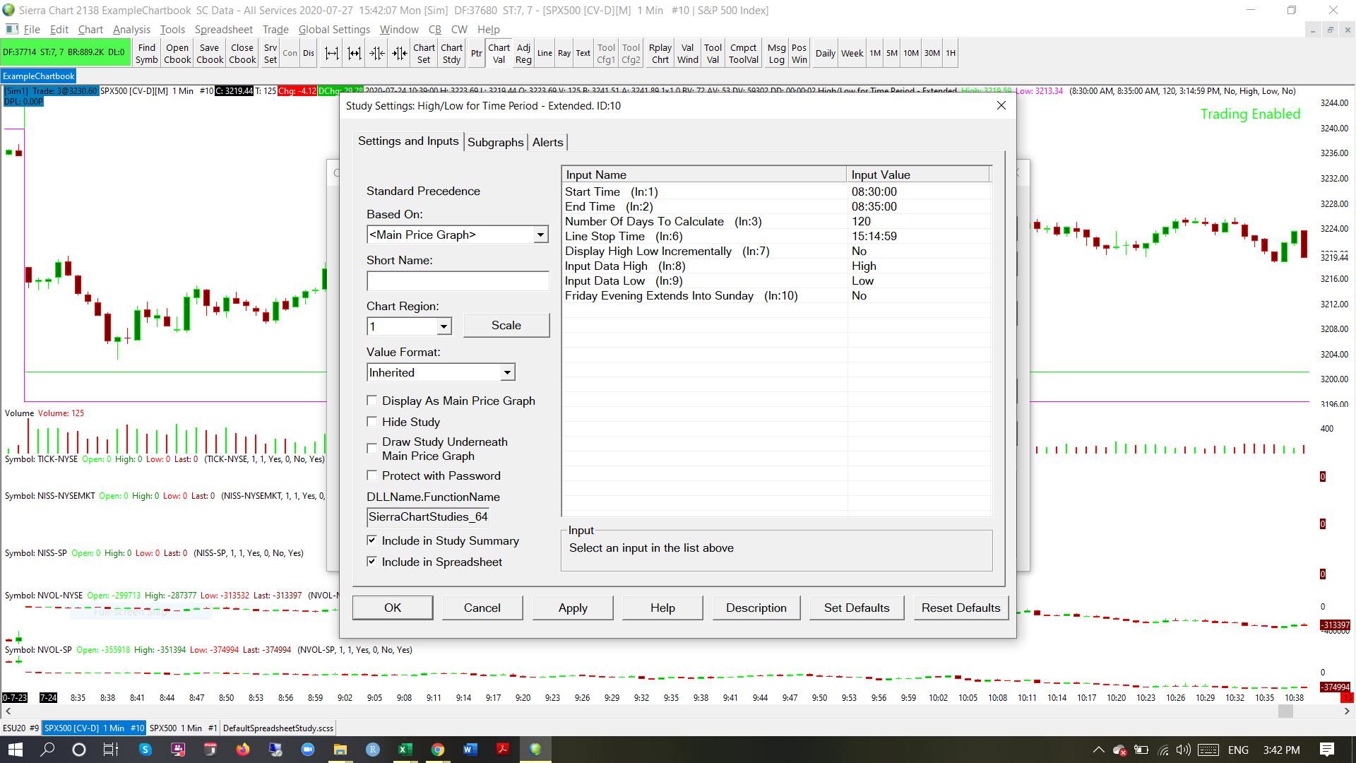 Why is the high low for time period not working properly? It is drawing lines somewhere below the specified first 5 min/bars on my 1 min chart - see screen shots and settings.