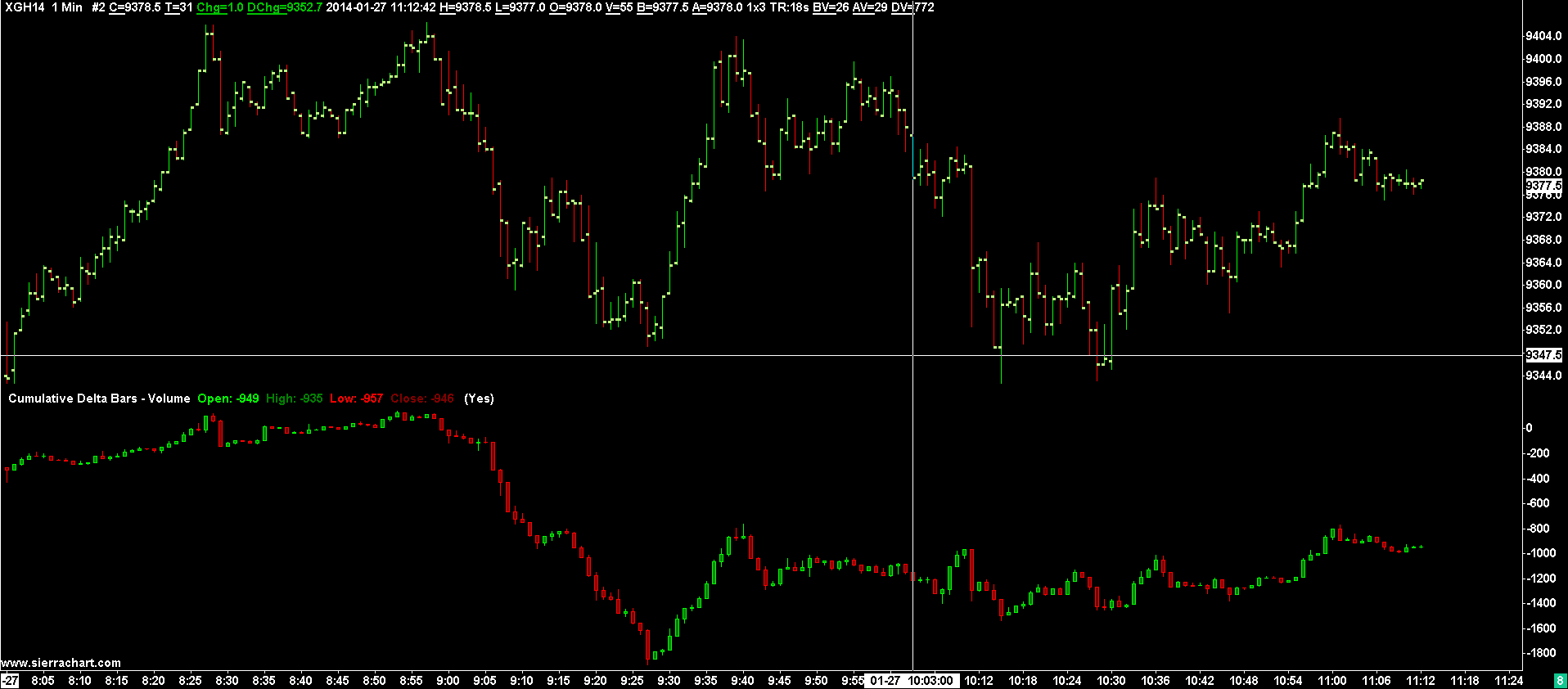There have been some changes with a Sierra Chart EUREX data feed, but it is really very hard to make any conclusive determinations about this. We really have to get back to basics and make a clear determination as to what the objective here really is. And what the meaning of bid volume and ask volume is. Our understanding of a trade at the bid is when a market order hits the best bid price which is established by a limit order and there is a trade. A trade at the ask is when a market order hits the best ask price which is established by a limit order and there is a trade. Trying to determine this from a data feed, requires very good synchronization between the bid and ask data and the last trade price data. Unless the exchange, like the CME does, indicates this, determining this from the price feed is imperfect at best. This is a chart of IQ feed Cumulative Delta for today for the March DAX futures: http://www.sierrachart.com/image.php?l=1390817582313.png This is the Sierra Chart EUREX feed: http://www.sierrachart.com/image.php?l=1390817632919.png The DAX is up on the day from its opening price. Does it make sense that the Cumulative Delta from IQ feed is so negative? And although IQ Feed has developed a good reputation, the actual calculations of bid volume and ask volume do not come from the exchange, they do not come from IQ Feed, they come from Sierra Chart based upon last trade price data, and best bid and ask price data. There is an algorithm applied to this to make the determination. Whether Sierra Chart is doing this in the very best possible way with a difficult to work with feed like the EUREX, is not necessarily true as we spend more time looking at this. This is what makes this whole thing difficult . Based upon what we are seeing today, with these current charts, those who are putting faith on IQ Feed and the interpretation of the data by Sierra Chart, raises some questions for us. Maybe it is all just perfect. Although can we be sure? At this point, we really have to analyze the raw EUREX feed and get an understanding from the exchange exactly how that data feed works. So this will require more research time. Sierra Chart Support - Engineering Level Your definitive source for support. Other responses are from users. Try to keep your questions brief and to the point. Be aware of support policy: https://www.sierrachart.com/index.php?l=PostingInformation.php#GeneralInformation For the most reliable, advanced, and zero cost futures order routing, *change* to the Teton service: Sierra Chart Teton Futures Order Routing Date Time Of Last Edit: 2014-01-27 10:21:43