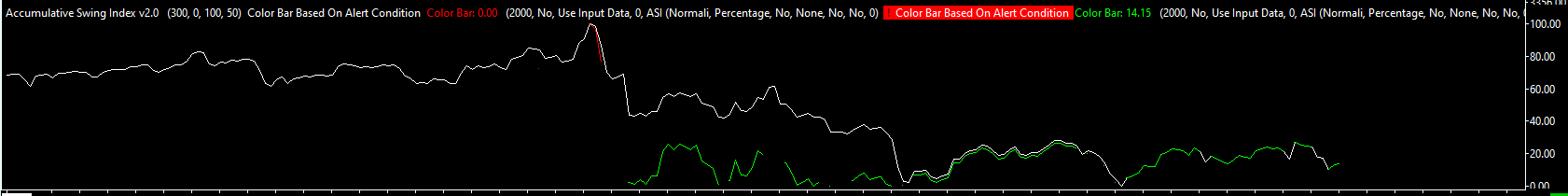 I am using the colour bar on alert to colour an indicator line when it is above 70 or below 30. The problem is that my indicator auto-adjusts to always show the current visible data in the ranged from 0 to 100. This means that the "normalisation" causes the historical values of the indicator to adjust. The problem I am facing is that the color bar indicator that I have added to color the line does not get adjusted and as a result I get a bit of a mess on my screen. The only way to fix it is to refresh the chart with the "insert" key. How can I get the color bar indicator to update correctly? I am attaching images of before and after a refresh. SC Version 2177 running. |