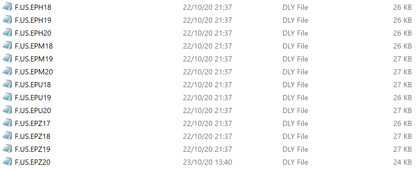 Thanks for the reply. It would seem that this works fine for the ES (F.US.EP##), given that there are over 10 daily history files for expired contracts with actual valid records in them (see attached file). If I'm not mistaken, that data comes from CQG too, doesn't it? Or does it fetch that historical data from the SC historical data service for some instruments? |