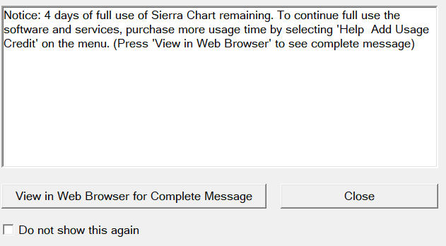 Good Evening, I had to have my Denali feed restored by the support group after it being turned off the other day. Service is working fine but I am now getting this message that I have never seen before. It tells me I have 4 days left of full usage left and I need to purchase more usage. I am not understanding why I am seeing this now. Thanks in advance. |