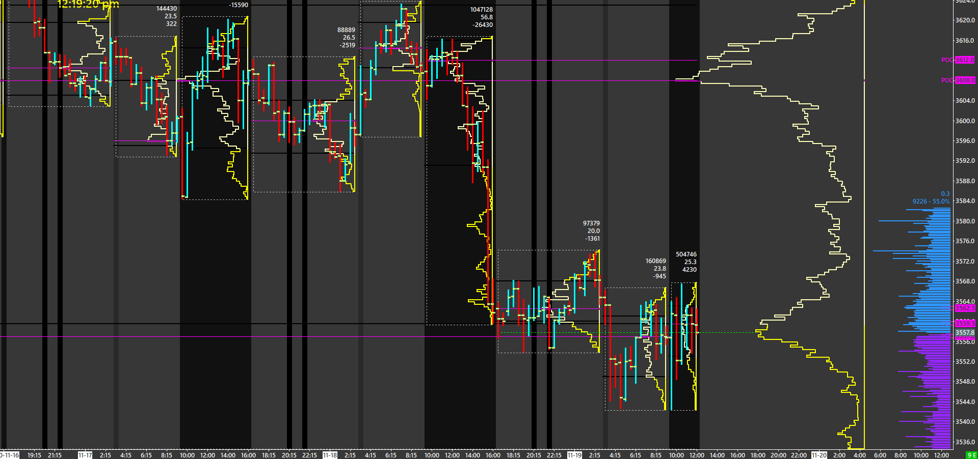 hello, i have been asked this a handful of times by some other sierra users and i dont think there is functionality for this, although i could be wrong. is there any way we can not have the volume profiles over lapped by the candles? many like to see the same timeframes from volume profiles every single day and week so we set 3 different profiles separating the parts of a 24hr period, for example. however, the candles always overlap the volume profiles when you set them this way. it makes it very hard to see where the volume nodes are and makes this visual tool somewhat less effective. when you put the charts in a TPO format, this is ideal. the TPO DOES NOT overlap the volume profiles, even if you have multiple different profiles. it would be nice to be able to have the volume profiles like this with different styles of charts and not just tpo. is there a way around this and if not, would you guys consider supporting this? thanks in advance |