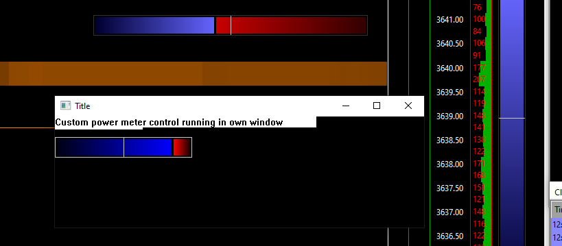 Its sierrachart you can do anything! You have access to any API so just include it and link to it. Using Win32 API GDI you can call CreateWindow to create windows and common controls. The attached shows a custom power meter rendered directly to a study and also in its own window. |