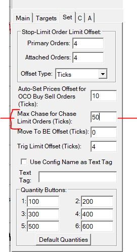hello, this is more a comment on the limit chase order type..as i have seen some Q / comments on this order type ppl had in the past esp for ppl trading products on BITmex via SC that want to use this order type y have to set the max chase for chase number correct! see pic max chase for chase number in ticks refers to the number of ticks y want your chase to run untill it stops to chase. so f.e. if y set it for 50 ticks it will chase 50 ticks and then it will stop chasing if not filled Date Time Of Last Edit: 2020-12-17 11:52:00