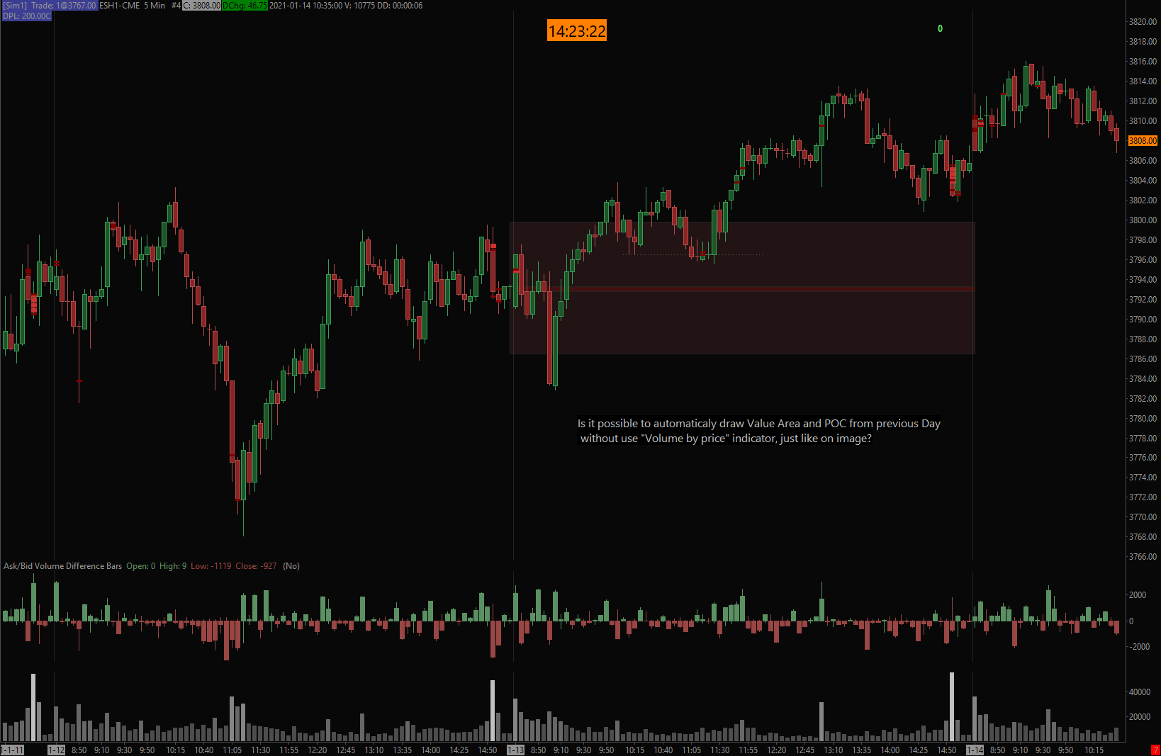 Is it possible to automaticaly draw Value Area and POC from previous Day without use "Volume by price" indicator, just like on image? Date Time Of Last Edit: 2021-01-19 20:27:49