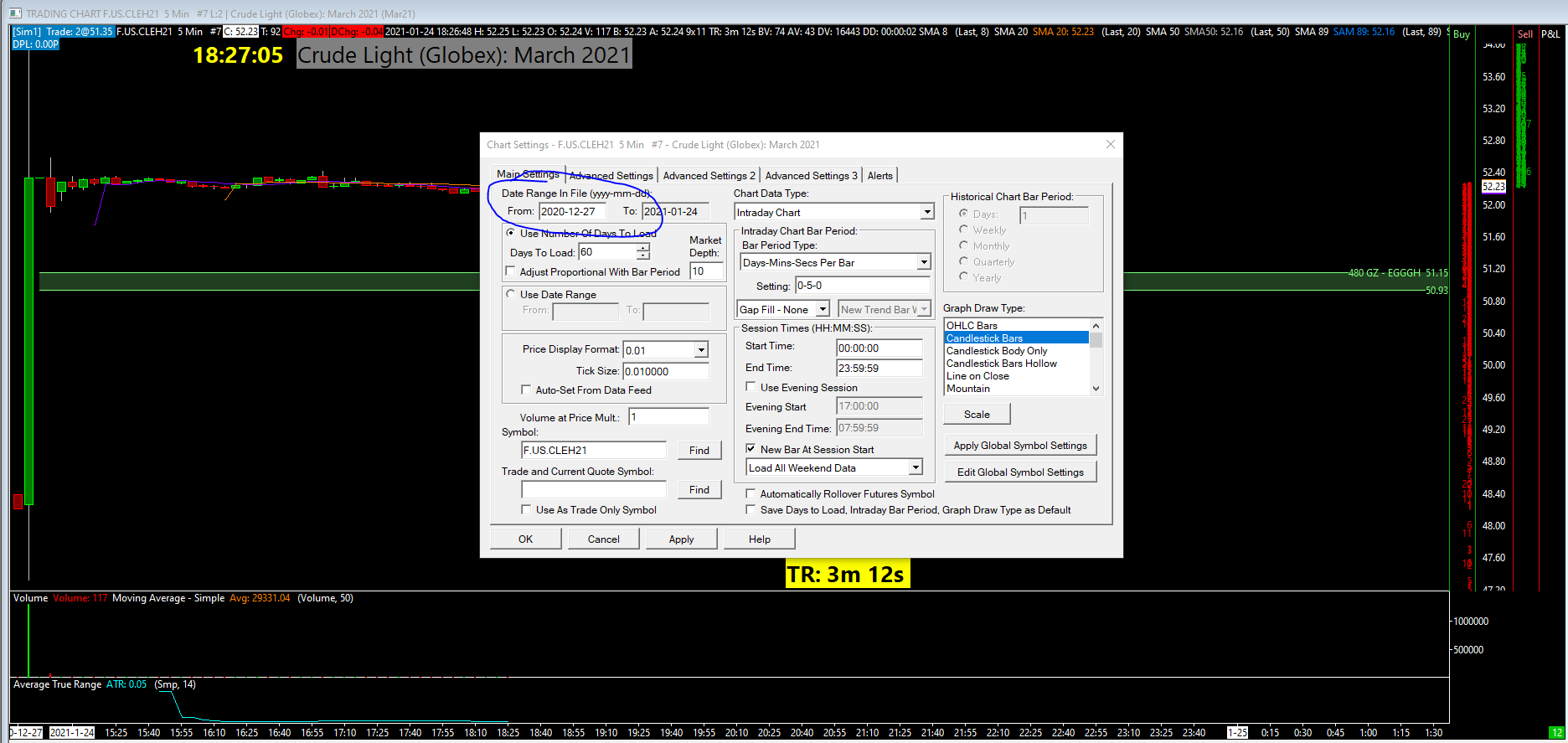 PLEASE SEE THE ATTACHED IMAGES OF MY SETTINGS. CHART WAS SET TO GO BACK 500 DAYS BUT IT WOULD ONLY SHOW ME BACK A FEW DAYS SO I TRIED MANUALLY TAKING IT BACK FURTHER USING THE DATE RANGE IN FILE AND IT MADE MY CHART LOOK LIKE THIS AND I CANT FIX IT....