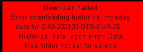 This morning I got an Error message for all Eurex products in my workspace. Download failed Error downloading historical Intraday data for DAX-2021-03-DTB-EUR-25 Historical data logon error: Data files folder not set for service Yesterday all was working fine. The CME products are working today. |