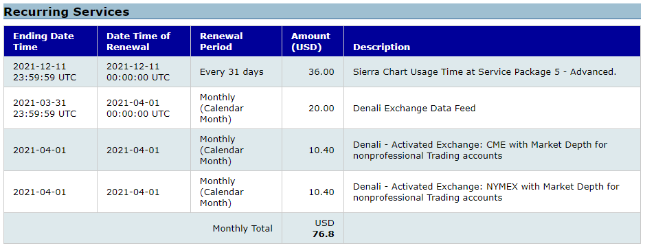 Hello, In my AMP Monthly statement for February, AMP is charging me 10 USD for "JAN21 Sierra Denali Data Fee". Is it possible that they are charging me what I have already payed through my Sierra Package 5 and Denali fees (40.8 USD/month) as you can see in attachment? Thanks Date Time Of Last Edit: 2021-03-02 22:19:09