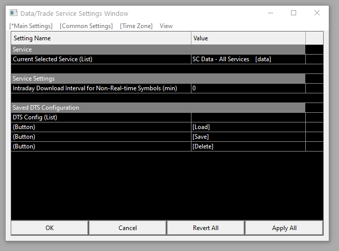Post From: Data/Trade Service Settings Window