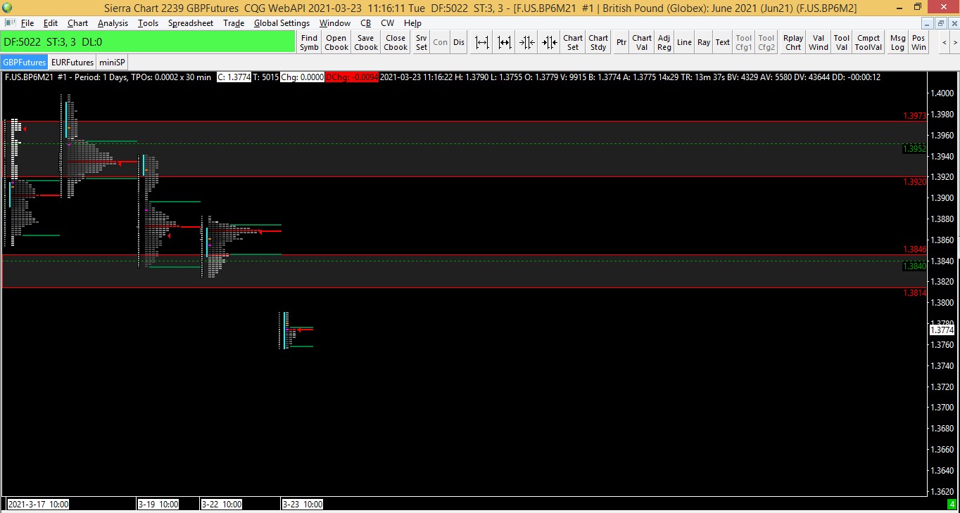 Dear Sirs, I have an active pack 5 subscrision and a trading account on AMP with a CQG data feed. On F.US.BP6M21 symbol with a chart that has TPO studies I see only the data from 17,03,2021. I can not scroll on time axis. The same setup I have for F.US.EU6M21 symbol and is working fine I can scroll the historical data. If I make an upgrade to Pack 11 can I trade with AMP account? Thank you, Regards, Bogdan |