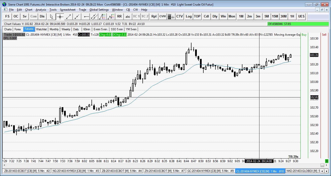Hi, guys. Today I noticed the datafeed stopping for 1 min at 12:15 EST, after which the gap in data appeared on all CME futures. I tried to redownload historical data (Edit/Download Data - Intraday chart), but historical data still contained the gap. I saw a similar gap around a week ago, but thought it was just a minor glitch. I prob would not be able to find this day again. Some screens, showing the data missing on 3 futures (PST Time): |