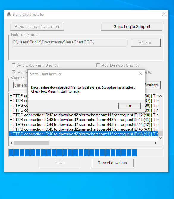 Hi, The installer starts installing but stops before finishing. Gives an error message - ERROR SAVING DOWNLOADED FILES TO LOCAL SYSTEM as shown in attached doc. Would appreciate your help thanks - Cathy