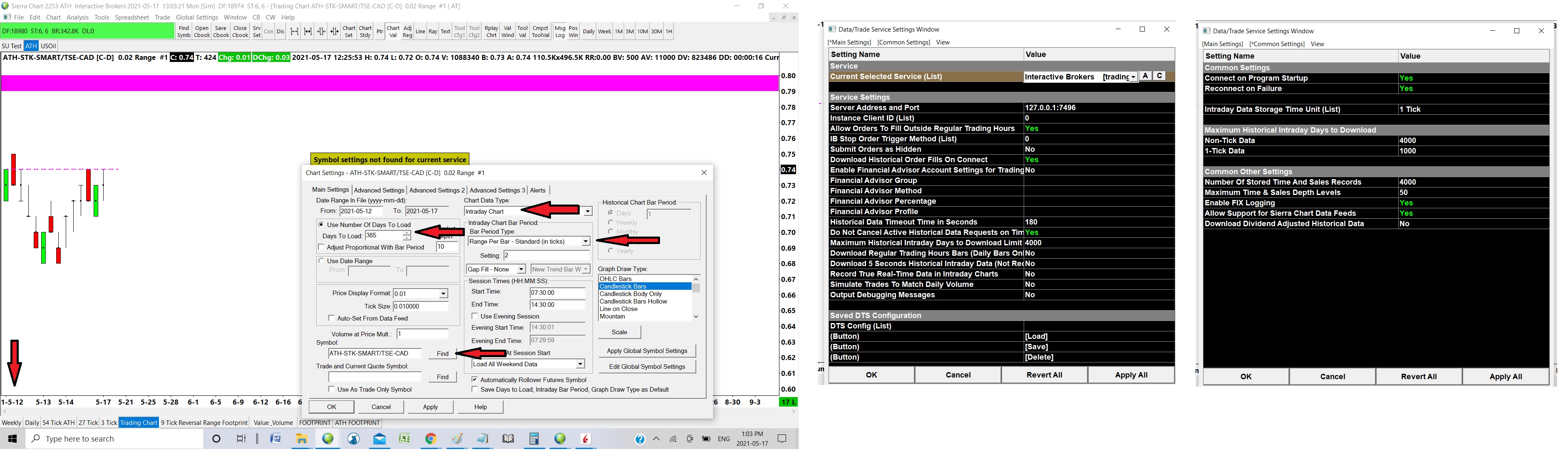 Hi, I have a IB market subscription for the TSE Level 2 data and am connectioned to Seirra Charts. When I try to chart some TSE stocks I am only getting 3-4 days of inter-day tick data and maybe 9 -12 months of historical weekly data. I attached some screenshots of a Weekly chart and a inter-day Range chart. Please Help ! Kind Regards, Daniel My sierra charts is connected to IB for TSE Level 2 market data. I have trouble downloading more than a couple days of interday data about 12 months of historical data. I can go on IB TWS and chart 20 + years of historical data. I contacted IB and this is their response: IBCS 2021/05/19 15:45:34 Dear Mr. ... I reviewed the log files and I did see that for the 1 day bars/ 11 day time historical data request, the EndDateTime was 5/28/2021, so that have been why you didn't see all the data for that request. But as far as the other requests, we did see the data being returned. So you may need to check with Sierra Charts to see how they are processing the data requests being sent from our end. If you have any further questions, please let us know. Regards, Nicholas C. IBKR Client Services - Technical Assistance Center |
