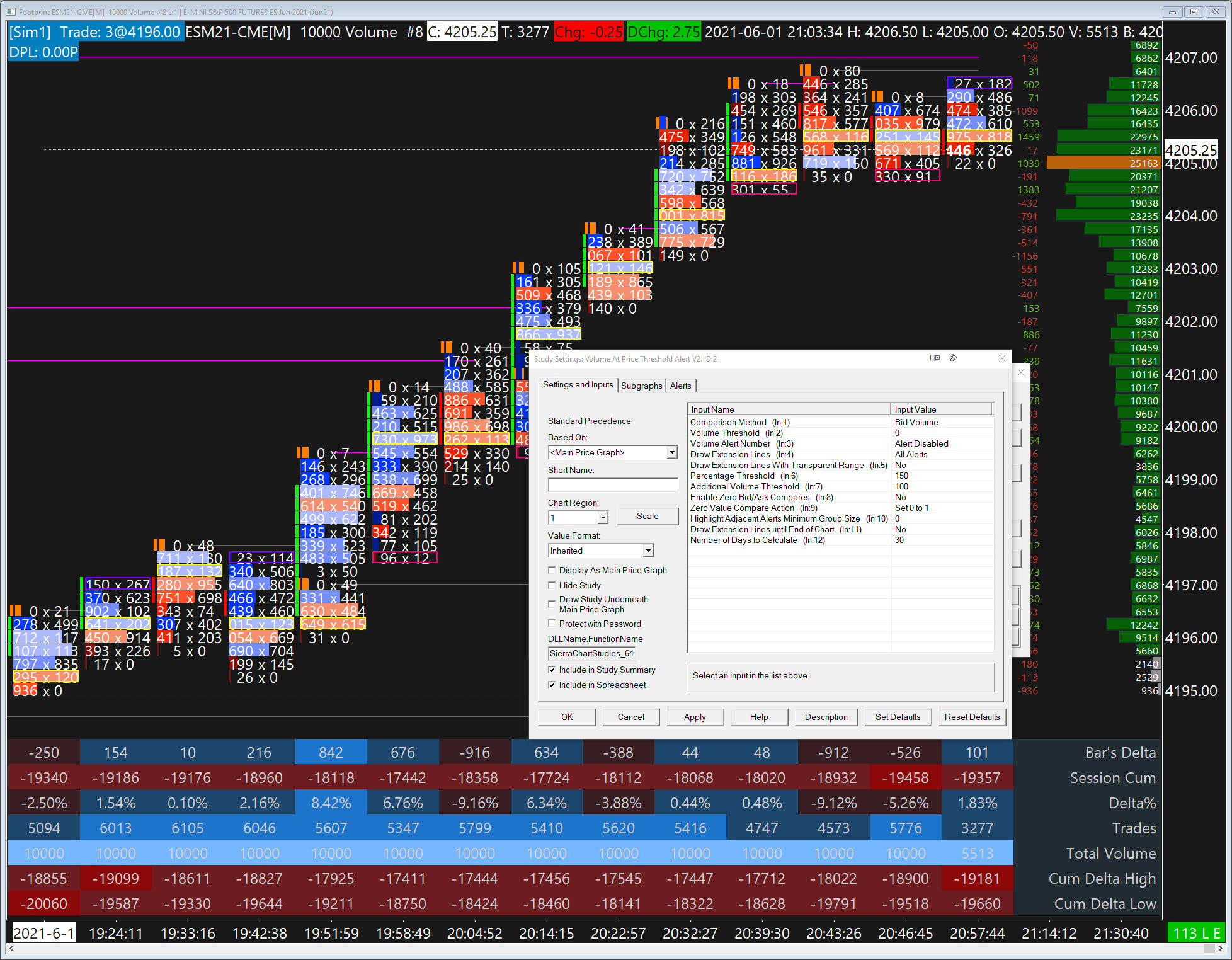I used the study you mentioned above: "Volume at Price Threshold Alert V2 study"