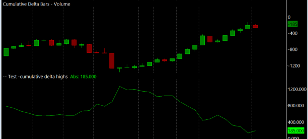 I am working on a function, which is making calculations based on the 'highs' and 'lows' of the cumulative delta. I have found out that it only worked correctly if the value of the cumulative delta is positive. For testing, I have then made a function which is simply copying the cumulative high values and painting it on a single graph (in my case: ID4.SG2 ..please see the attached screenshot). But then I have seen the follow: - Is the cumulative delta negative, the copy function is just ignoring when the value is negative. So in my example it turns '-185' in '185', so the whole graph is inverted. Please can someone tell me how to get a Graph which is equal to the highs on the cumulative delta? Also if the cumulative delta is positive or negative. Thanks very much! As attachment a screenshot of the graph and also one of the settings. |