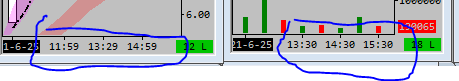 pic attached, something has happened to my one set of charts, the 30min chart on left is calculating 1min behind the others what setting needs to be tweaked? i havent changed anything to trigger this |