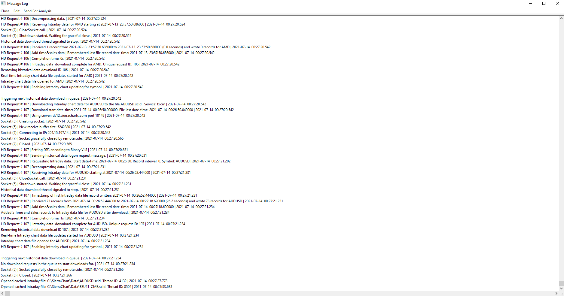 Forwarded the log; the issues arise on all CME, CBOT, CBOE, COMEX, NYMEX, and Eurex symbols.