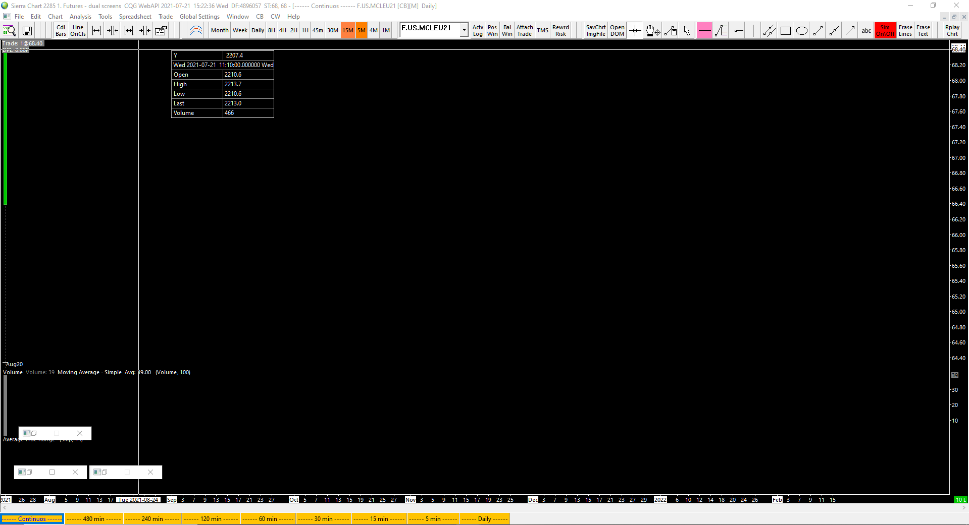 hello, in addition to my previous issue (which you still haven't resolved), see attached the daily chart of the micro crude oil with days to load set to 350, the chart only prints one single bar! |