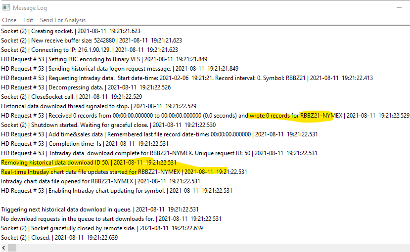 Thanks John, Responses in line. The reason for BB (Brent Crude) on the NYMEX not showing any updates is because you are looking at the U (September) contract which stopped trading at the end of July. You should have the historical data for it however. Unfortunately the behaviour persisted for the November and December contracts. You did not include any information for RBB, so we do not know what the reason is there. Same cancelled process as BB. Tested the December contract. Apologies having trouble adding a new s/s to this chat. As to TF, it appears that the ICE is no longer offering that instrument. Now RTY. Moved to the CME. |