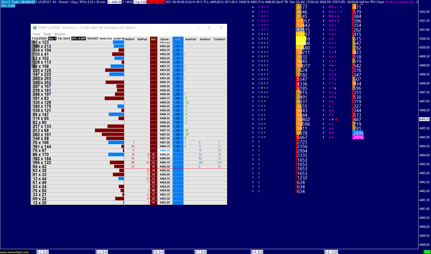 Hey there thank you for your help. I attached some Sierra charts links to my charts image I'm finding some anomalies on my volume profiles both in market profile charts and in DOM charts. High, low, POC, etc visual references are accurate but the total volume displayed and bid x ask volume displayed is not accurate. 1.-On volume profile sometimes profiles have numbers repeated like very generical and not looking like real volume. For example, on the 5 bottom tick prices, you could find 634,634,634,1653,1653,1653. (I'll attach some pictures) 2.-On DOM Ladders, high and low of the day will be accurate but you will find 0x0 on bid-ask some times and volume displayed is not accurate (I'll attach photos) This is not a Data Provider problem. I have double-checked that. This must be a VOlume Profile Settings issue. Could you please help? 1.-Image about Volume Profile "generic" or not real http://www.sierrachart.com/image.php?Image=1631164469717.png Image with overlaid charts for DOM issue 2.-http://www.sierrachart.com/image.php?Image=1631164773896.png |