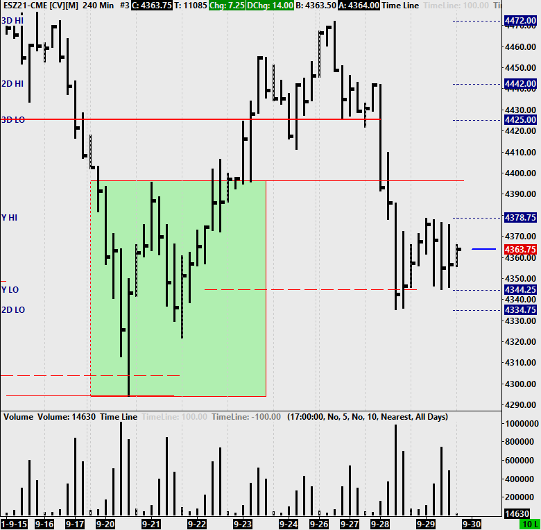 You can also see from this 240 minute chart that 9-20-21 had much more volume than 9-21-21.