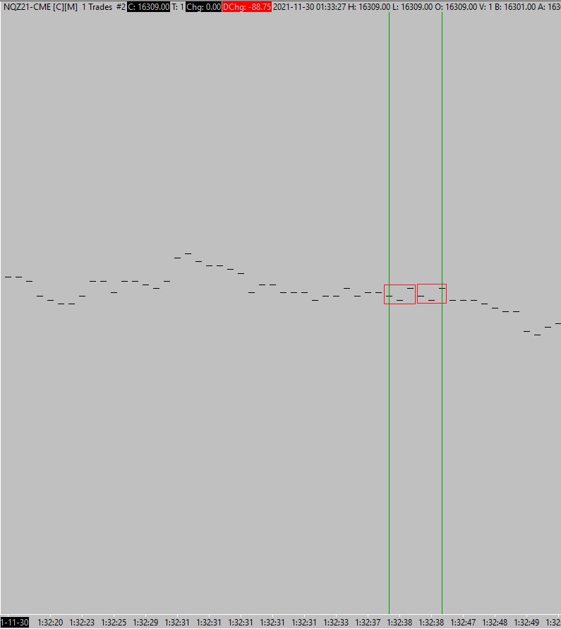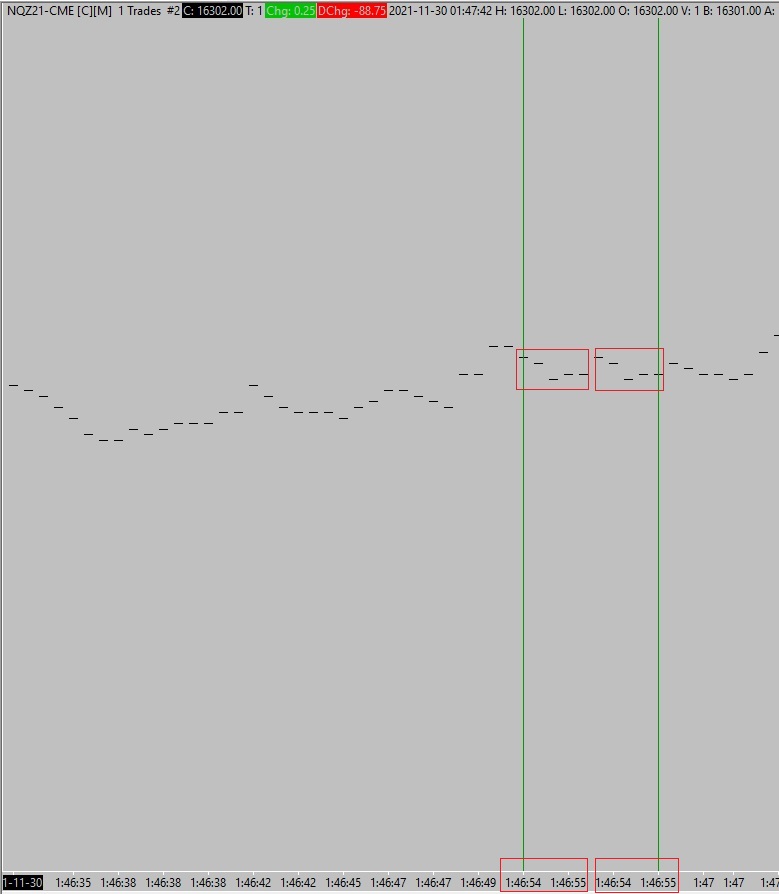 Hello I wrote an ACSIL study which references a tick chart of the type “Number of trades per bar == 1“. Almost 99.9% of the time the study works correctly, but suddenly it does output nonsens data. I started investigating and found data sequence errors in the chart. What I mean is, there should not be a tick with an older timestamp than the previous one. The time stamps should only be ascending and not suddenly descend for few ticks. Further more I figured out, this behavior happens as soon I connect to the data feed and it is performing the backfill. The data sequence error happens more or less at the boundary of the already existing data and the new one. According to the attached DSE* pictures, there are duplicated sequence of ticks. Example: There are following ticks on the chart. 1 2 3 4 5 6 7 8 9 You connect to the data feed. Instead getting only the ticks 10 11 12 13 14 15 …… you get also a few of the already existing ticks. 6 7 8 9 10 11 12 13 14 15 As a consequence you have a few duplicate ticks in the chart. You can check this also in the Intraday data editor. 1 2 3 4 5 6 7 8 9 6 7 8 9 10 11 12 13 14 15 The amount of duplicated ticks is not fix. In the attached examples its something between three ticks and ten ticks. I use the Sierra Chart delayed data feed. I know we can/should expect data errors, but since this happens each time when I connect to the data feed, I think there is something to improve. It is not symbol related. Kind regards |