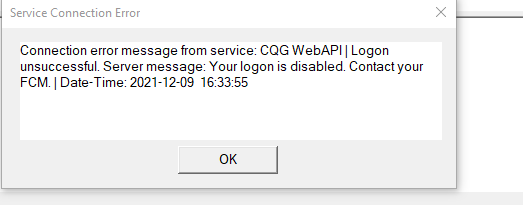 Post From: Connection error message from Service: CQG WebAPI Logon Unsucessful
