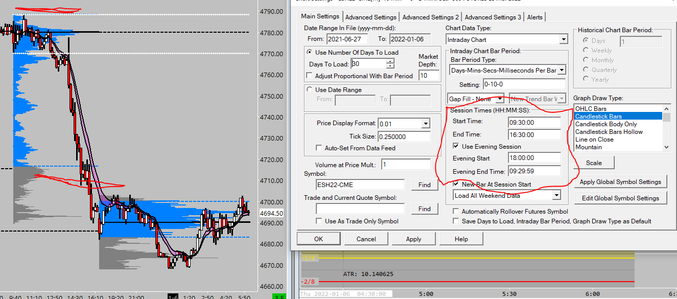 now here, using the VBP study , with the SAME sessioion time as the TPO chart, my Value areas and POC are different. is what im trying to fix. why are they different? the session times are the same? what am i doing wrong here? ideally id like to NOT have the evening session on the candlestick chart, just the RTH session, but i need to make sure the value areas are correct here.