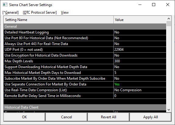 Thank you for the fast responses and all the ideas, but this might be deeper. 1. I have updated (from 2328 to 2342) 2. I have always had the correct Server and Chart Setting to be able to have DepthOfMarket (see pictures attached) 3. My login is InteractiveBrokers of course (see pictures attached), but the data comes from Denali, as always. This last point is why I suggest that the issue must be deeper: even in the past, once I had my broker connected thru API , it was Sierra's own connected that provided the history as well as this DepthOfMarket. |