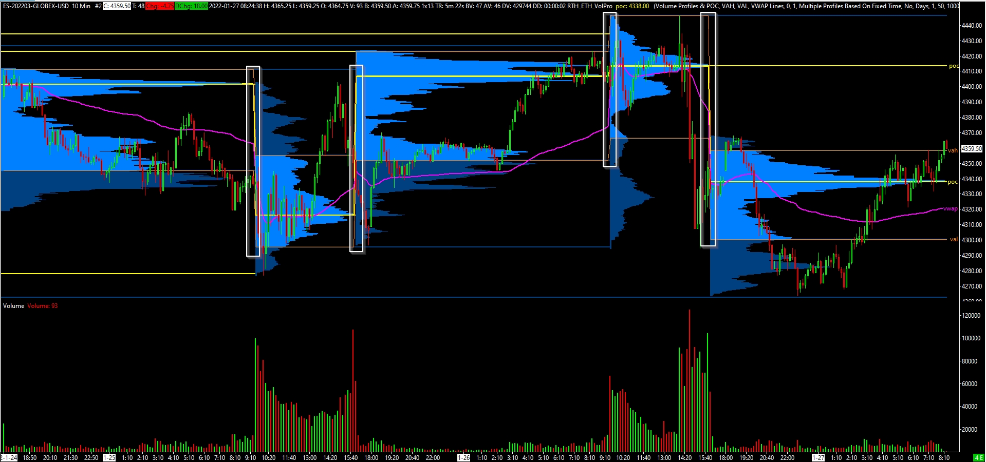 Post From: Volume by Price using RTH/ETH. The POC/VAH/VAL run down to the next profile - very ugly