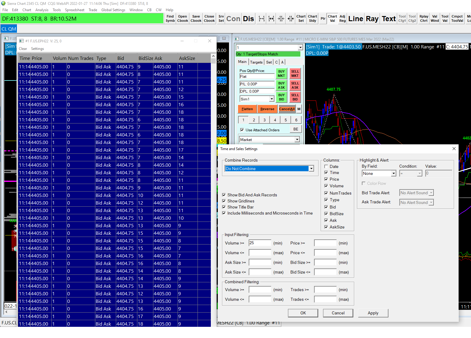 I am unable to filter volume on the time and sales, please see attachment. Thank you |