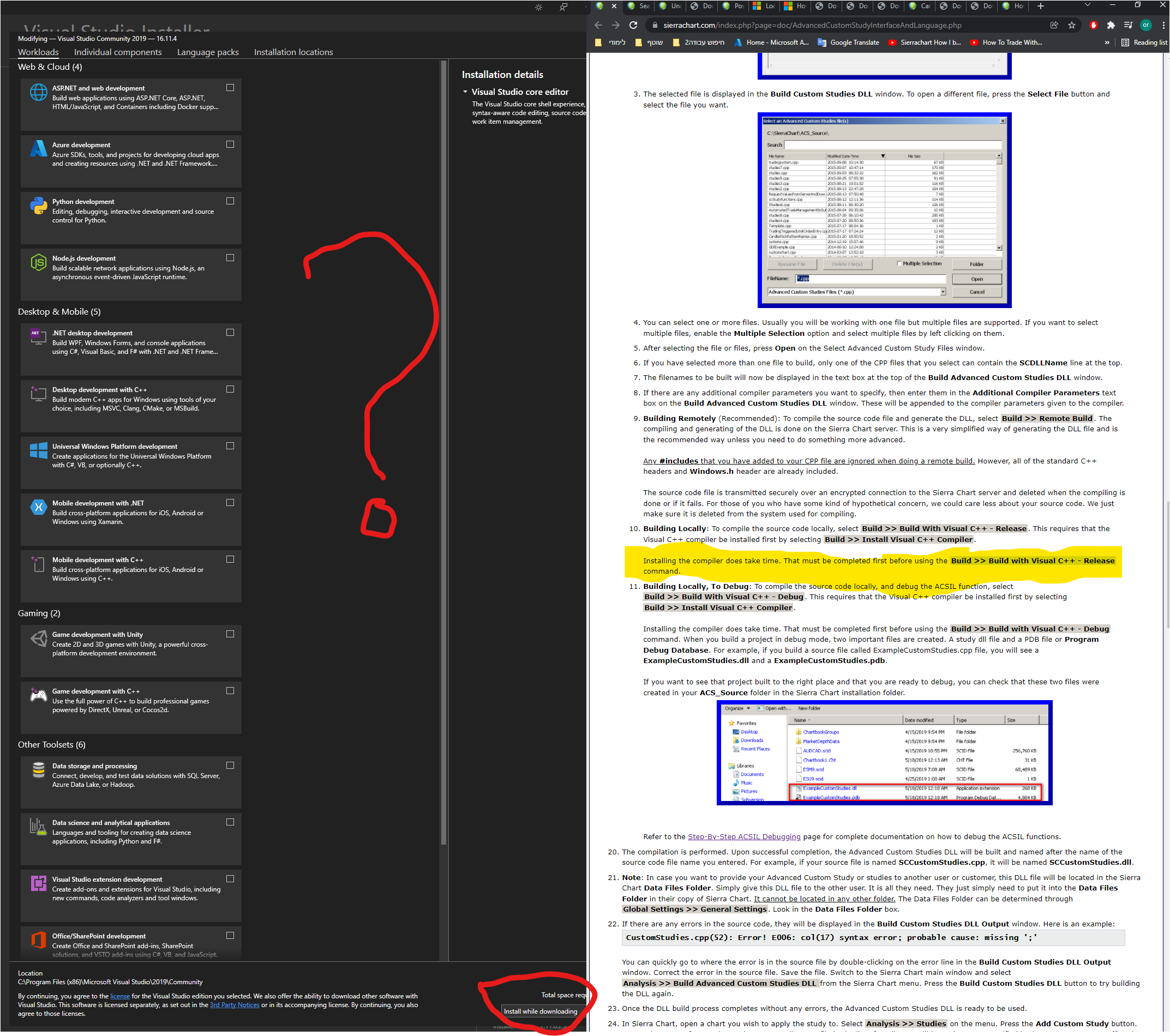 after over the steps to build an ACSIL, i was required to download and install the compiler... which i need to install to proceed ? refards |