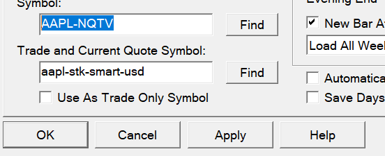Ok, I find the only way I can trade from the chart using IB is the following: (attached example) It's a bit of a pain to do this and it does not scale for when I have single charts linked to a quote board. Is there a better way? Thanks |