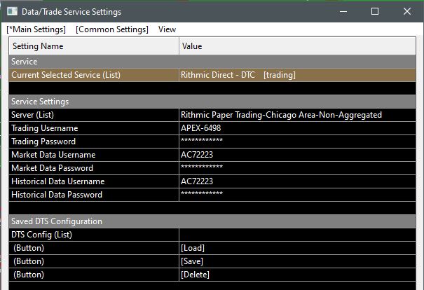 Can you please confirm my DTS settings here are correct? Everything seems to be working properly, I just want to be sure the SC Denali data feeds are being applied. 1) I am trading with Apex login credentials as a proprietary trader using 2) Denali login credentials for all my historical and market depth data. 3) I then switch over from Apex to my $150+ funded broker login credentials (assigned to "Trading Username" / "Trading User Password") once a month to avoid the higher cost charges for professional traders, correct? Thank you for your confirmation!