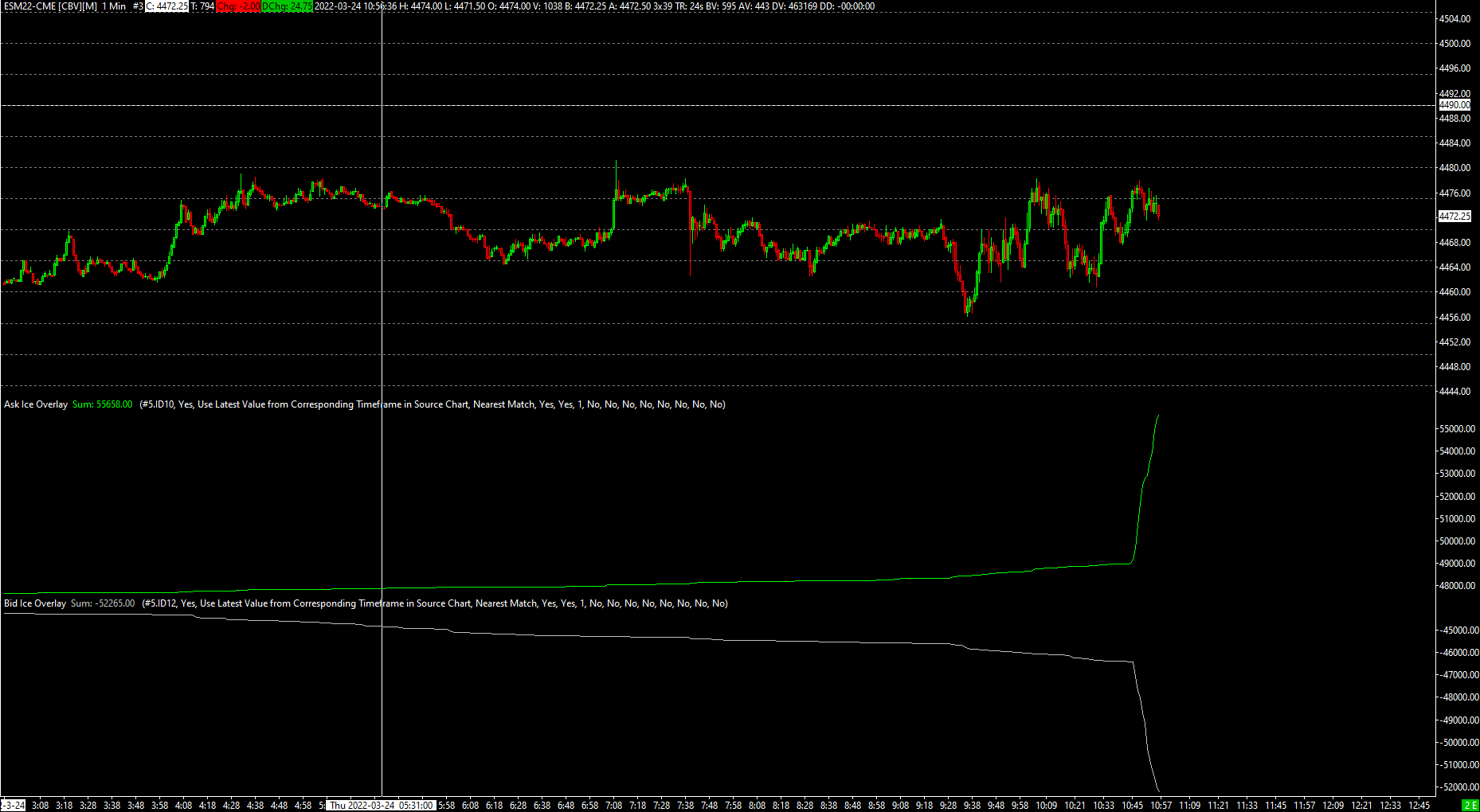 I am using 'color bar based on alert condition' to print specific values in a chart im using. using input data when condition is true and evaluating on bar close. then, i am using the summation study to sum these values. this works fine looking backwards and when i refresh the chart, but not when it runs live uninterrupted. the summation study is continuously adding values from the 'color bar based on alert condition' study, regardless of if the study ends up even printing anything. almost as if the summation is using the earliest values instead of the last values. I need it to sum the final printed values in real time, not just when i refresh the chart. attached are two screenshots. because this summation is done on a tick chart, I overlaid it to a 1 minute chart so you can see more clearly what im referring to. the first image is before i refreshed the source chart to "reset" that summation, and the second is after i refreshed. https://www.sierrachart.com/image.php?Image=1648133797537.png https://www.sierrachart.com/image.php?Image=1648134060356.png finally, here is the source chart where you can see the two summation studies adding to themselves with no prints, leaving erroneous values. I hope my explanation makes sense https://www.sierrachart.com/image.php?Image=1648134156908.png |