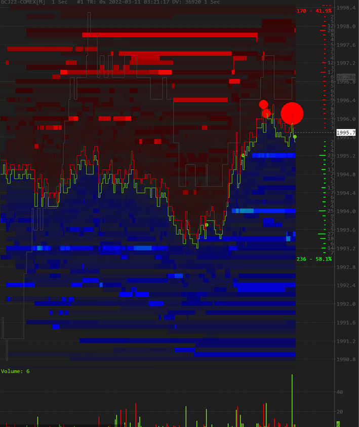 As Global data feed provide 1 second snapshot of tick level trades with bid and ask volume, we don't get DoM data to plot something like historical heatmap/liquidity something like the one attached here. Could you please guide us on , is ther anyway we could configure heatmap for NSE markets? any other datafeed available, if not possible with GDFL data. Thanks in advance |