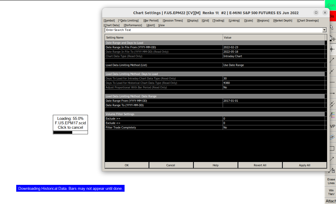 I don't really understand the behavior of this tab: Why if I set Date Range In File From to 2022-02-23 the system start to loading from 2017 as you can see in the attach file? I setup Load data limiting method (list) --> use date range and Date Range and Days to load --> 2022-02-23 Date Time Of Last Edit: 2022-05-31 08:21:12