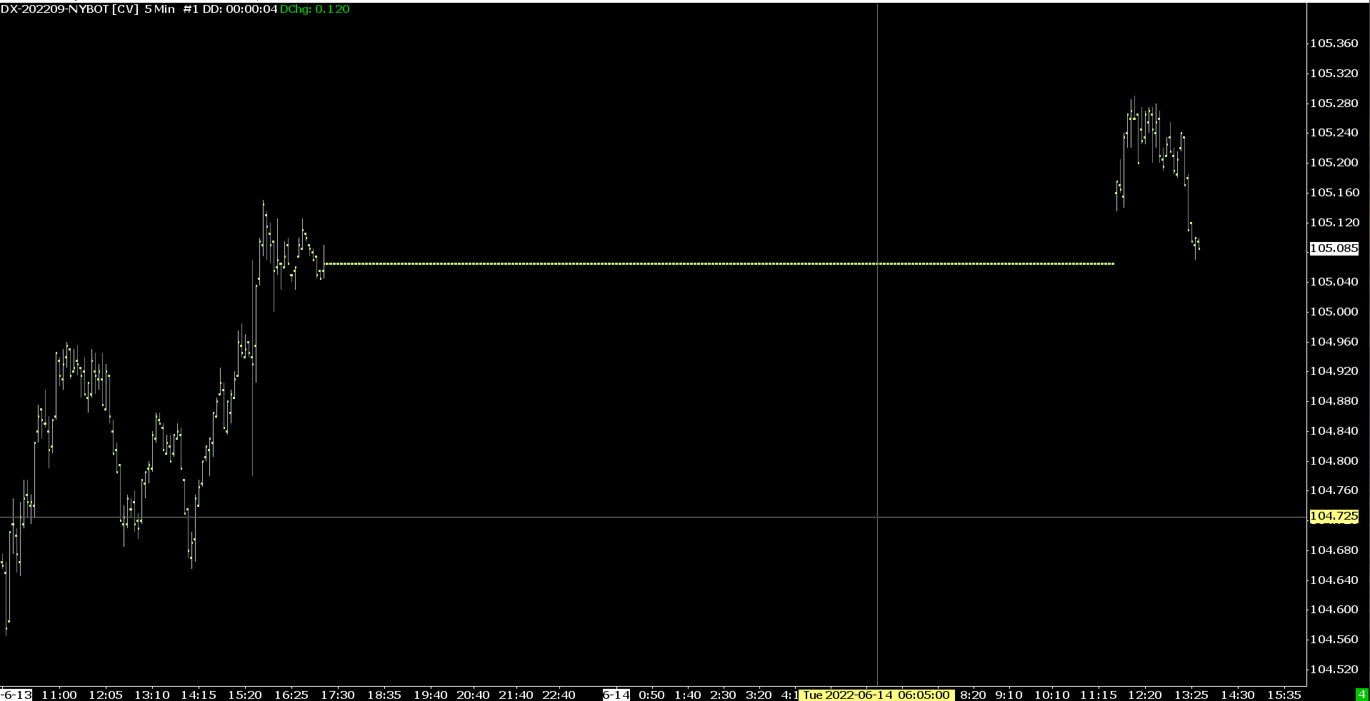 Yesterday it would not load anything except 1 bar, and today it loaded some more data from yesterday, but very little, from while the chart remained open, starting from 11:30am ET. DX-202209-NYBOT , using Find Symbol function. Tried EDIT, DELETE ALL AND DOWNLOAD. Set to continous contract and days to load to 100. Get this error also attached. Also, only while chart is open, it seems to load streaming delayed data, but stamped on the chart timescale as if it is real-time. Date Time Of Last Edit: 2022-06-14 17:45:57