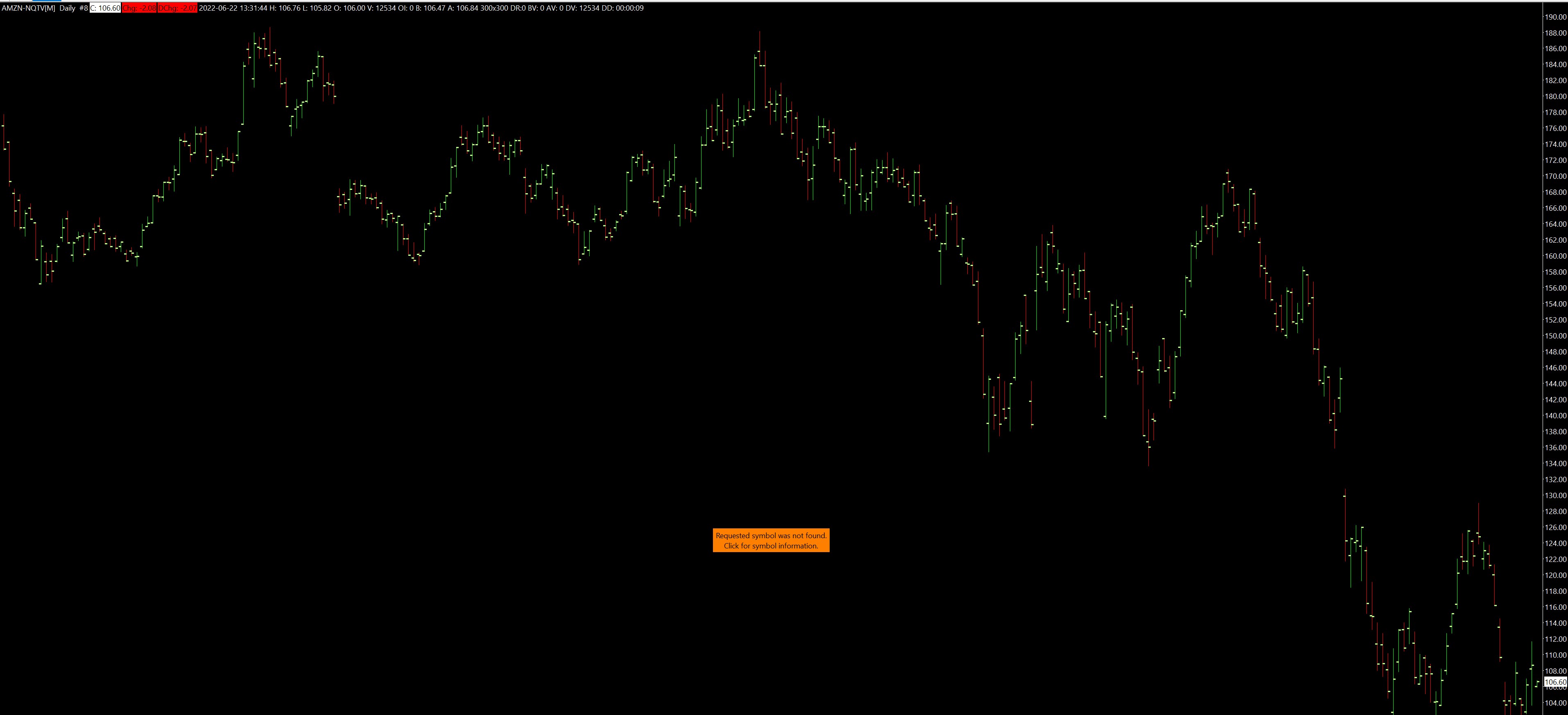 Here is a chart showing the issue. in case you did not understand the issue. its impossible to have a working AMZN chart, candles are all over the place. Also, everytime i open any stock chart, i get this error first ( symbol not found, see photo attached ) |