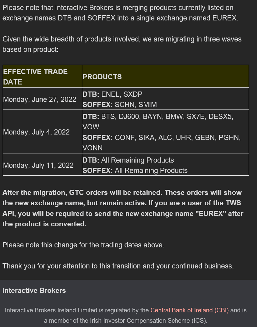 Post From: IBKR: Merger of DTB into the EUREX Exchange