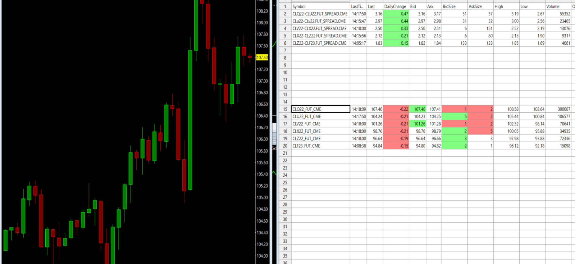 On Quote Spreadsheet- says daily change for CL122 have daily change of -.22, when daily change should be positive. Don't know where the daily change figure is coming from. Daily change should be 107.41-103.99=3.42.